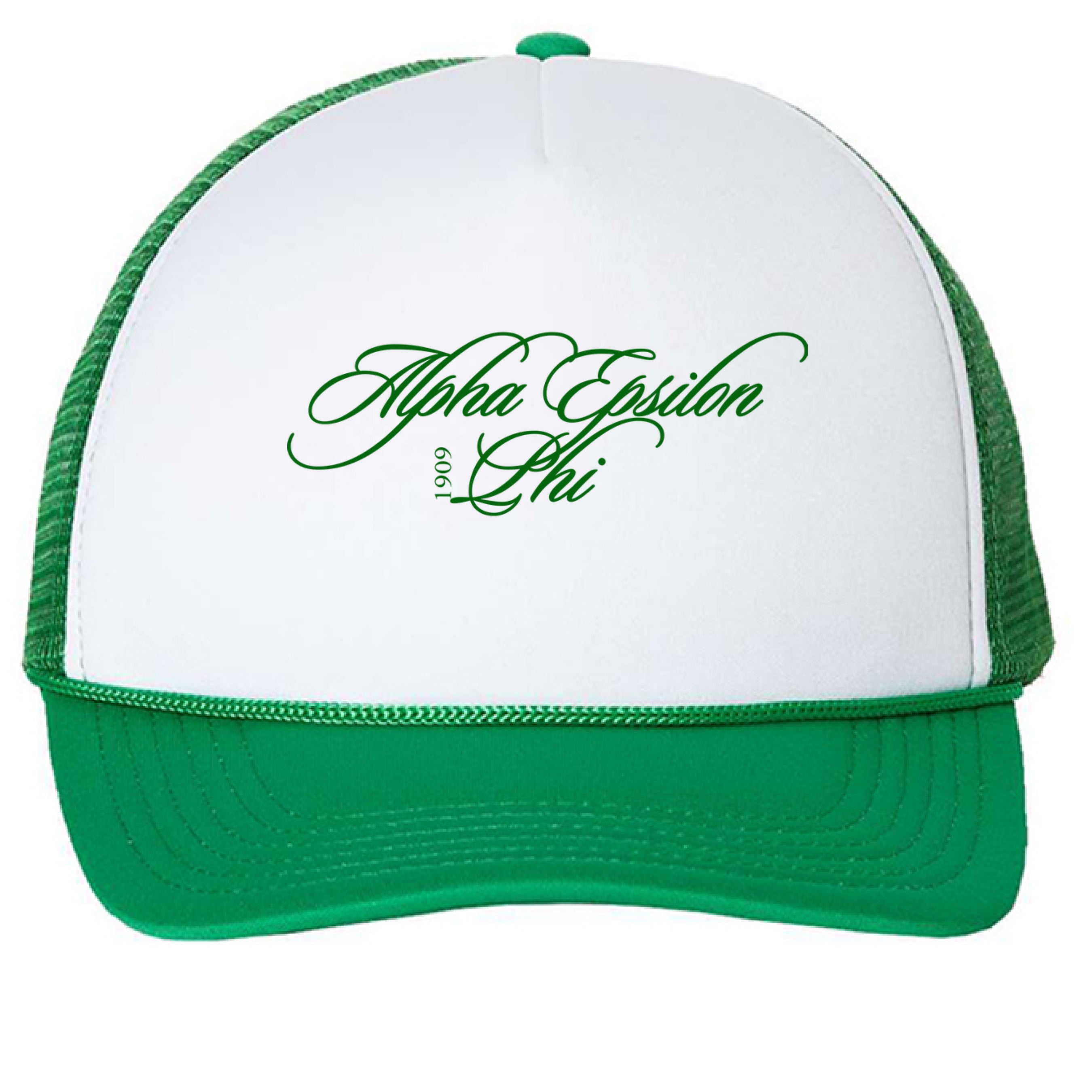 Cursive Alpha Epsilon Phi Green Trucker Hat